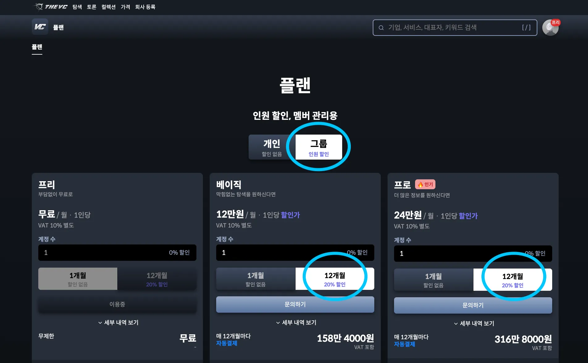 비용은 기간 할인율을 적용하지 않으며, 인원 할인은 적용된 금액으로 산정합니다.